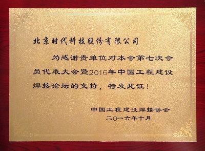 北京時代科技股份有限公司榮獲中國工程建設(shè)焊接協(xié)會優(yōu)秀支持獎