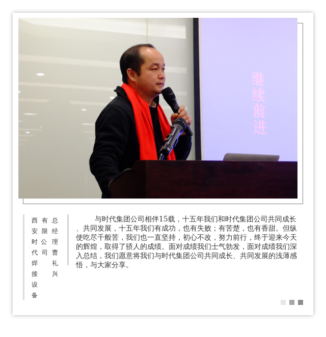 汲取經(jīng)驗,擁抱成功!成績是我們前行的基石,是進(jìn)步的階梯,但它并不不代表未來。在前行的路上我們尋找不足、精益求精;在成長的途中我們豐滿羽翼、展翅翱翔,我們所做的一切,都是為了打造一支鋼鐵團(tuán)隊、在萬里商場奔騰馳騁,在華夏大地逐鹿中原,我們堅信:屬于時代集團(tuán)公司的新時代一定會到來,我們時代集團(tuán)公司的名字必將會響徹全球!