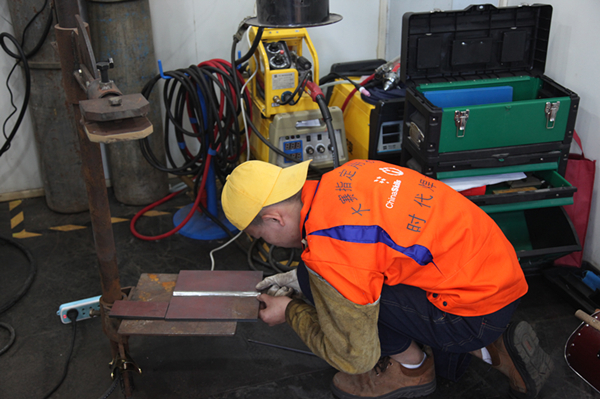 為了應(yīng)對(duì)這場(chǎng)高手的廝殺,時(shí)代焊機(jī)早已做好充分準(zhǔn)備。賽場(chǎng)中30余個(gè)工位整齊而規(guī)范的擺滿了嶄新的時(shí)代焊機(jī)。時(shí)代為大賽提供的比賽機(jī)為:直流氬弧焊機(jī)PNE61-400及半自動(dòng)氣保焊機(jī)A160-350。時(shí)代的技術(shù)支持人員早在賽前就將所有設(shè)備調(diào)試和就位完畢,等待著焊接精英們的苛刻考驗(yàn)。本次焊接技術(shù)競(jìng)賽實(shí)操考試的題目按兩個(gè)模塊設(shè)計(jì),模塊1題目為板類對(duì)接和T型角焊縫焊接內(nèi)容,主要考核選手們操作實(shí)芯、藥芯氣保焊及手工焊條的技能。模塊2題目為填絲氬弧焊方法焊接大賽標(biāo)志內(nèi)容,主要考核選手們氬弧焊接的技藝水平。在時(shí)代焊接設(shè)備的有力支持下,選手們都順利而圓滿地完成了各個(gè)規(guī)定賽題。從5月7日一早開始,時(shí)代焊機(jī)就開足馬力持續(xù)運(yùn)轉(zhuǎn),經(jīng)歷了一天的使用,焊機(jī)一直發(fā)揮正常,焊接過(guò)程中沒(méi)有出現(xiàn)任何瑕疵。時(shí)代的幾名服務(wù)人員一直守候在賽場(chǎng),隨時(shí)聽候選手和裁判的調(diào)遣。
