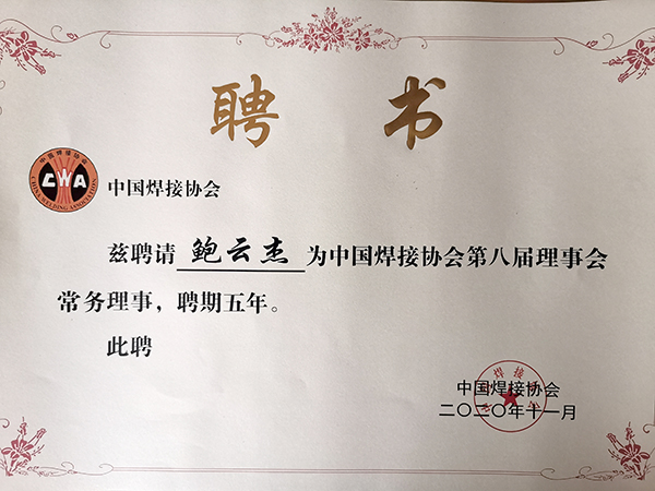 中國焊接協(xié)會第八屆一次理事會暨八屆一次常務(wù)理事會,中國焊接協(xié)會第八屆理事會監(jiān)事會第一次會議于2021年4月17日上午在浙江省寧波市召開。會議選舉產(chǎn)生了第八屆理事會主要負(fù)責(zé)人、常務(wù)理事及第八屆理事會監(jiān)事會監(jiān)事長,同時(shí)頒發(fā)了第八屆理事會各級領(lǐng)導(dǎo)、單位的資格證書及個(gè)人聘書。會議期間還組織召開了中國焊接行業(yè)高質(zhì)量發(fā)展論壇。在本次會議中,北京時(shí)代科技股份有限公司當(dāng)選為中國焊接協(xié)會常務(wù)理事單位,公司總裁鮑云杰當(dāng)選為中國焊接協(xié)會第八屆理事會常務(wù)理事。