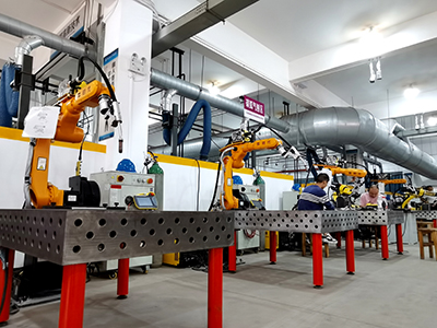 激烈的競賽活動于9月26日上午正式開始。本次技能競賽內(nèi)容分成理論競賽和實操競賽兩部分。競賽的標準以“1+X”特殊焊接技術(shù)職業(yè)技能等級為依據(jù)并結(jié)合焊接行業(yè)的特點而制定。在實操競賽中,各位選手將在規(guī)定時間用內(nèi)手工焊接和機器人焊接方法完成一個結(jié)構(gòu)復(fù)雜的組合工件的焊接。在該組合件的焊縫中有一半用手工焊接完成,另一半用機器人焊接來完成,焊縫的位置、角度各不相同,涉及的焊接工藝包括焊條電弧焊、氬弧焊及氣體保護焊。競賽賽題的設(shè)置即檢驗選手的焊接技能,又考核了選手的識圖裝配和設(shè)備操控等方面的綜合能力。