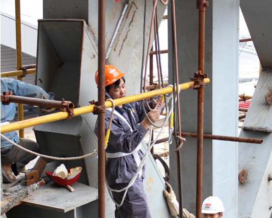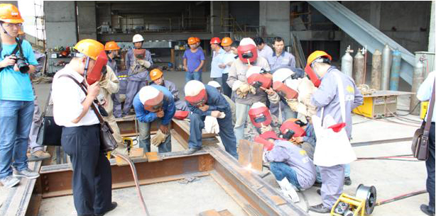 獻藝活動結(jié)束之后,時代公司高級技師張自祥和另外兩名全國五一勞動獎?wù)芦@得者在工地現(xiàn)場根據(jù)施工方的要求,還做了板對接橫焊、立焊和平焊示范演示,與承建方焊工師傅們進行了面對面交流,掀起了新一輪學習、交流的熱潮。