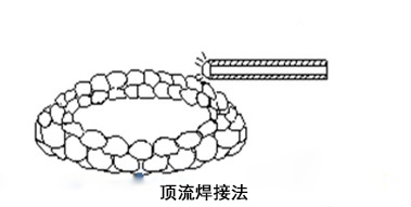 此方法適應于低壓容器及管道的裂紋或砂眼、氣孔的焊接法。施焊盡量使用小直徑焊條,焊接電流比正常增加10%左右,手法采用快速焊法。用電弧的熱量加熱漏點處的周邊,熄弧后,用手捶或尖鏟迅速向泄漏處擠壓,邊焊邊錘擊捻壓。