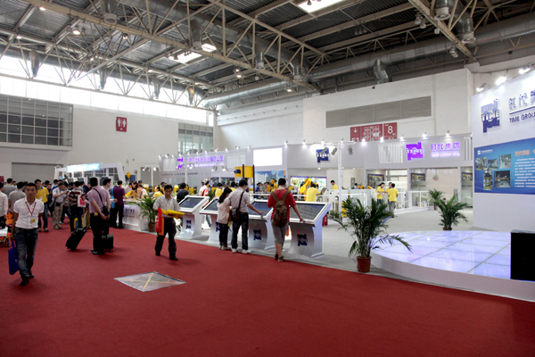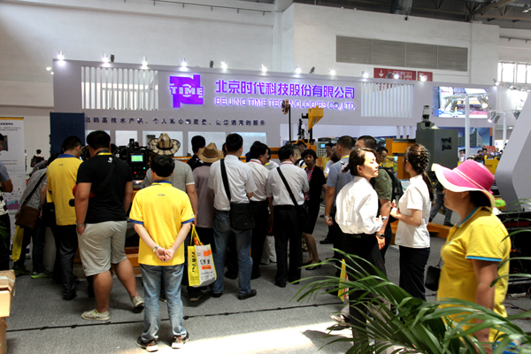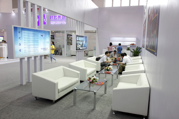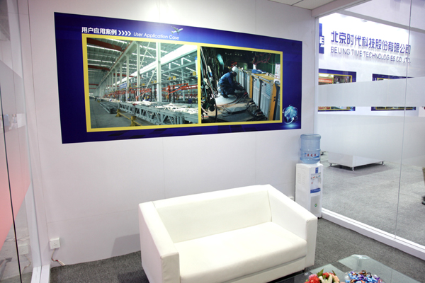 北京時(shí)代科技股份有限公司是業(yè)內(nèi)展臺(tái)面積最大的參展商,展臺(tái)總可利用面積達(dá)到1008平米。公司的展位位于展覽中心的E2館。展位號(hào):E2602。時(shí)代展臺(tái)風(fēng)格恢弘大氣、通透開闊,這也是時(shí)代一貫的風(fēng)格和氣魄。展臺(tái)色調(diào)以白色為主輔以藍(lán)色的燈箱字和有機(jī)字做點(diǎn)綴。今年時(shí)代的展臺(tái)中間橫跨一條6米寬的主通道,把展區(qū)分成左右兩邊。通道的上端制作了跨接結(jié)構(gòu)上面高懸著時(shí)代公司碩大的LOGO。醒目的標(biāo)志使觀眾站在E2館很遠(yuǎn)的地方就能看到時(shí)代展臺(tái)。
