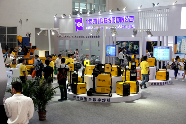 時(shí)代展臺(tái)用最大的篇幅展現(xiàn)了時(shí)代焊接電源產(chǎn)品系列,各類焊機(jī)的展示和演示組成了焊接電源展示區(qū)。時(shí)代第三代新型TD系列全數(shù)字焊機(jī)是展示區(qū)的主角。外形設(shè)計(jì)美觀獨(dú)特的TD系列焊機(jī)吸引了觀眾的目光,紛紛駐足觀賞。展示區(qū)前面是TD系列電源演示施焊區(qū),公司設(shè)置了五個(gè)焊接操作臺(tái),有四個(gè)操作臺(tái)安排由焊接技師進(jìn)行表演,每個(gè)操作臺(tái)都安裝了專業(yè)視頻監(jiān)視器,它將焊接演示過程轉(zhuǎn)播到后面的大屏幕液晶電視上供觀眾觀看。今年演示的焊機(jī)均為最新型TD系列全數(shù)字焊機(jī)。演示機(jī)全部實(shí)現(xiàn)集控聯(lián)網(wǎng)控制,由布置在后面的集控臺(tái)電腦遠(yuǎn)程遙控。今年在演示區(qū)增加了現(xiàn)場解說功能,并在操作臺(tái)的后面設(shè)置了高20厘米寬50厘米的講解臺(tái),講解員手持無線麥克風(fēng)沿著這條地臺(tái)在五個(gè)操作臺(tái)后穿梭往來,不斷地向來賓介紹著時(shí)代最新的技術(shù)和產(chǎn)品。