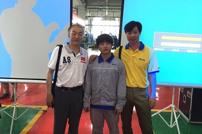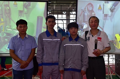 圖4:時(shí)代首席高級技師(右)與焊接專家(左)、世界冠軍曾正超(中)