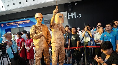 為了讓觀眾更加直觀地看到焊接工藝的全過(guò)程、同時(shí)宣傳國(guó)產(chǎn)技能裝備,主辦方在賽區(qū)外還特意設(shè)置了焊接展示區(qū)。展示區(qū)由時(shí)代公司負(fù)責(zé)規(guī)劃和布置展出,展區(qū)占地面積達(dá)200平米。