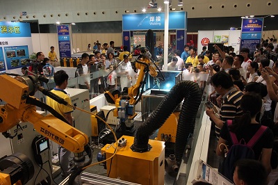 時(shí)代展區(qū)按展品的類(lèi)型分為時(shí)代弧焊機(jī)器人設(shè)備、TD系列全數(shù)字焊機(jī)、焊接培訓(xùn)模擬儀、焊接材料等四個(gè)主題,還提供了技師演示、咨詢(xún)接待、微信互動(dòng)等服務(wù)。其中,焊接機(jī)器人、微信互動(dòng)獨(dú)具魅力。時(shí)代微信打印機(jī)為觀眾定格美麗,時(shí)代機(jī)器人以其優(yōu)質(zhì)精良的焊縫和精準(zhǔn)高效的焊接動(dòng)作折服了現(xiàn)場(chǎng)觀眾,令不少青年人躍躍欲試親自操控機(jī)器人動(dòng)作。焊接培訓(xùn)模擬儀也令人印象頗深。觀眾們紛紛參與演示活動(dòng),通過(guò)VR眼鏡體驗(yàn)3D立體焊接畫(huà)面,實(shí)時(shí)觀測(cè)焊槍與焊接空間的距離,模擬真實(shí)的焊槍手感,同步立體顯示操作動(dòng)作。